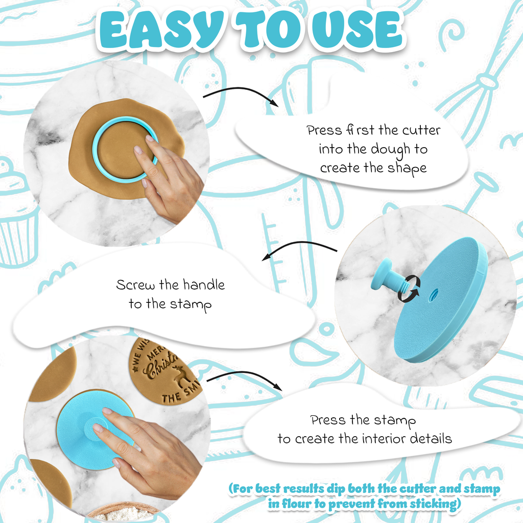 This custom cookie stamp set is perfect for bakers, moms, families, and anyone who loves festive kitchen fun.