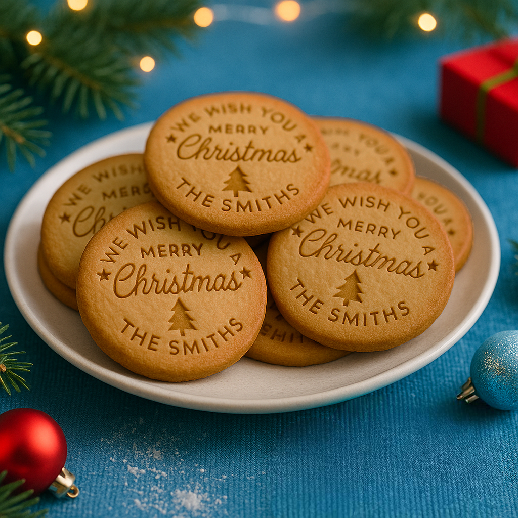 Add your family name (ex: THE SMITHS) and watch it appear crisp and clear on every cookie.